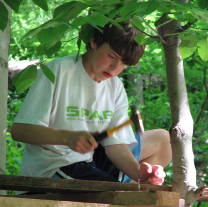The other picture is my son, aka sportsmaniac, working hard on his always growing, mega fort. He is currently adding a deck, and has a nice, white resin chair to put on it. He found the chair floating down the creek after a big storm. Cant’ beat those prices for a chair. š