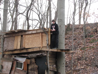 He got to duck tape dad to a tree and build a way cool fort! Every boys dream! How cool!