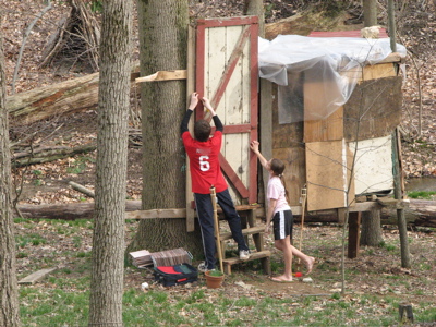 1. Yes Di, this is a “new” fort, in the ever growing fort complex in our woods. Sometimes I think they are building their own city! 🙂