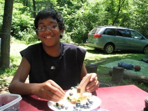 The Questionator loved camping, he enjoyed eating hot dogs cooked over a fire and not in a microwave, he liked playing tether ball, he enjoyed running down the beautiful wooded trails, he relished time looking at the stars at night, he thought is was cool that you could pee in the woods( boys!!) and he loved the pool at the campground. The Fresh Air fund is a wonderful program that brings kids to the country for the summer. The Questionator lives in a small 3 bedroom apartment in the Bronx, and rarely ever can just go outside and hangout. I know this trip to “the country” means so much to him each year, this is his 6th summer with us. Each year we get more of a glimpse into his isolated life in that apartment in the Bronx. What a contrast it is for him to come to our house. His first year here he thought the woods behind our house contained lions, and zebras, he thought is was a jungle. Now he shoots the air soft gun and runs in the creek back in the “jungle.”