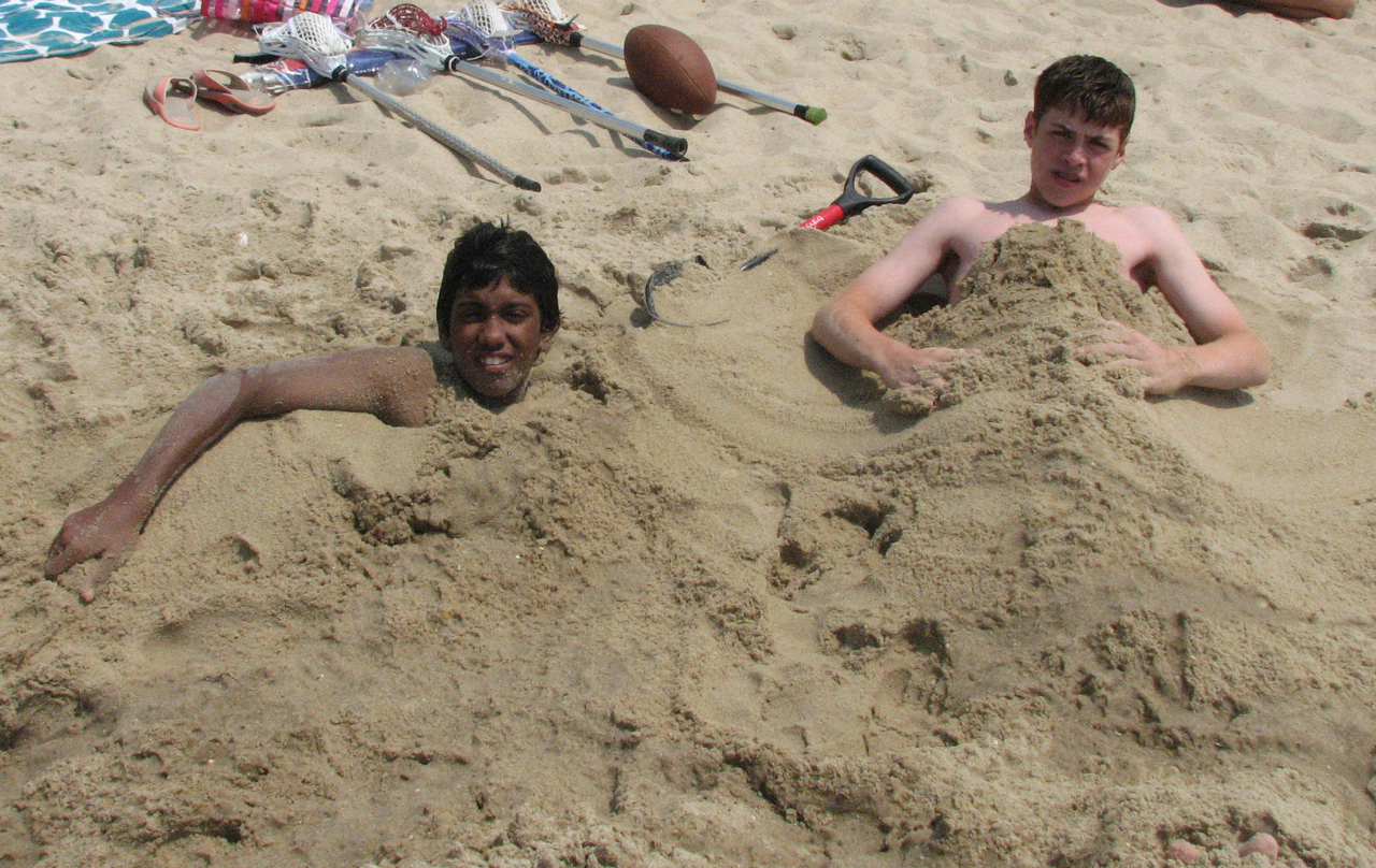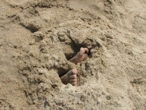 We have a similar one with feet sticking up from a beach at an ADK lake (fourth lake in Lake Luzerne)…when are you coming out to NYS/ADKs?