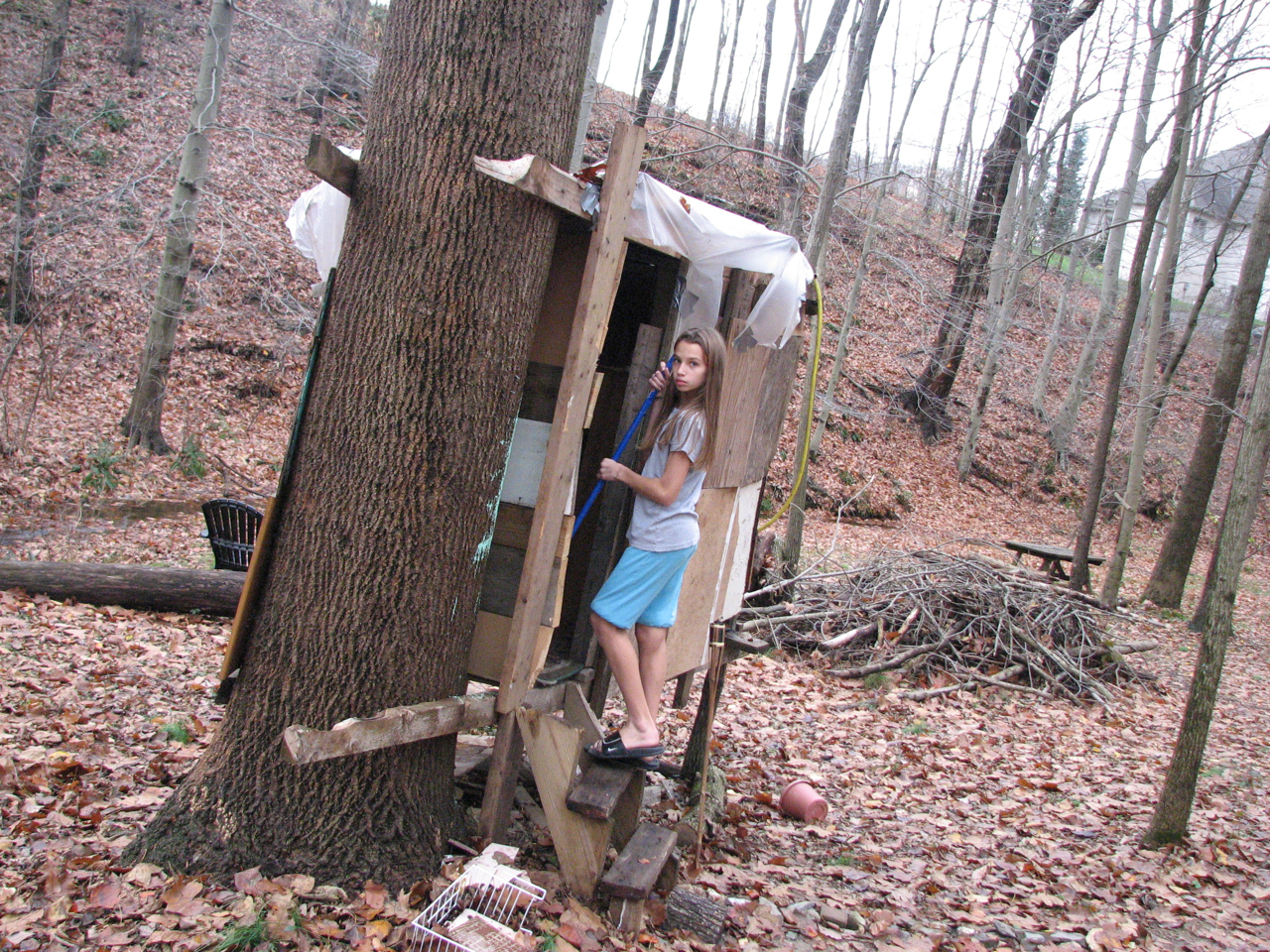 1. This reminded me of where I grew up, tons of woods, and a tree fort of course. I loved it and have many fond memories of playing in it with my friends. You have some lucky kids there.