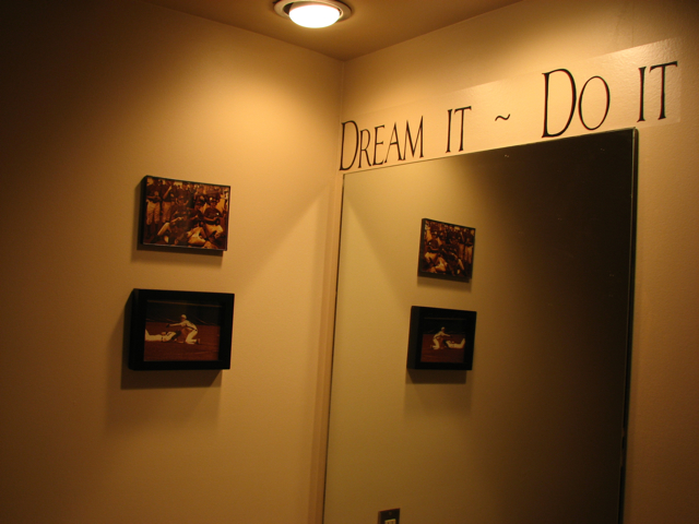 I love your blog name! 🙂 The lettering on your walls is neat. I’ve always wanted something like that, but not been brave enough. You’ve given me new inspiration! Great job on the weights! Wow! I’m impressed.