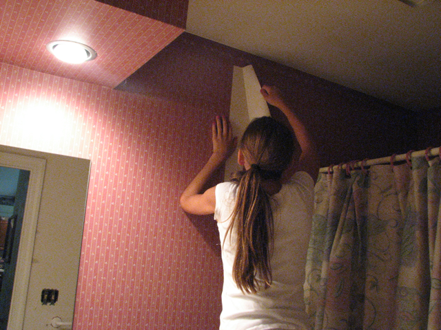 #3 Finally after years of complaining about the wallpaper in our downstairs bathroom, I did it! I got rid of it!( Hallelujah chorus should start singing now!) Here are a few before and after shots. Since SportTman is the main one who will use this bathroom, I hung up a bunch of baseball related pictures.