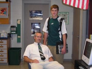 Here is a fun picture of SportTman and Drums in my classroom before school in the  morning.