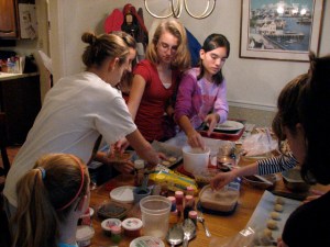 I love this picture from The Inventor’s Christmas cookie party.  It may not look like anything special, but I LOVE how there are 7 girls all working together, to make an array of cookies!