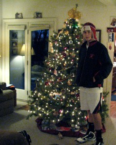My sweet little boy edged closer to becoming a man this past Thurs.  He turned 15, and had his first home JV basketball game of the season on his birthday.  He had a great game, scored 12 pts and had at least 5 rebounds.  At 6’2 he is the starting center for his team.  I was a proud mom, even dragged my stomach flu ridden body out to his game.  Wouldn’t have missed it.  Here he is wearing his new, funky hat ready to play some hoops!