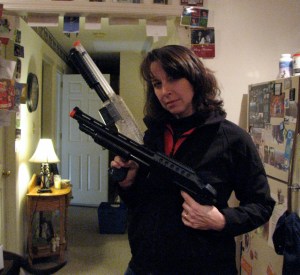 Me…after the party! Trying to look like the cool, air soft gun shooting mom that I have become! 🙂