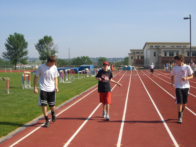 Track and Field Day for my students! It was a steamy and HOT day, but we had a BLAST!  My special needs students got to participate in a ton of running and throwing events against 3 other schools.  I brought SportTman and 6 other volunteers along for the day.  It was a memorable day full of fun and smiles!  I apologize for blocking out the student’s face, but with confidentiality I must, but I think you get the idea….my student was booking down the track for the 50 meter dash, with SportTman and another buddy beside him.