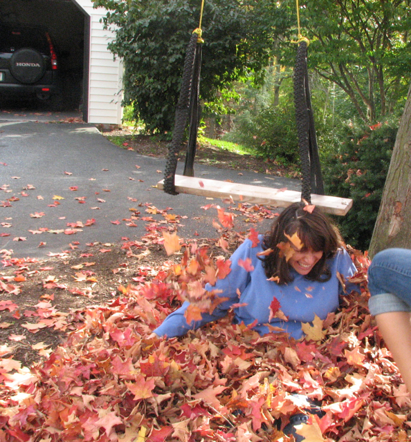 I also cut loose a bit the other day….things have been a little stressful at our house as of late.  So I decided I needed to get out and play!  I actually jumped in a leaf pile with The Inventor! 🙂  I have such fond memories of jumping in the leaves as a kid, and love the smell of a leaf pile. 🙂  So I just jumped in, felt great!!! 🙂