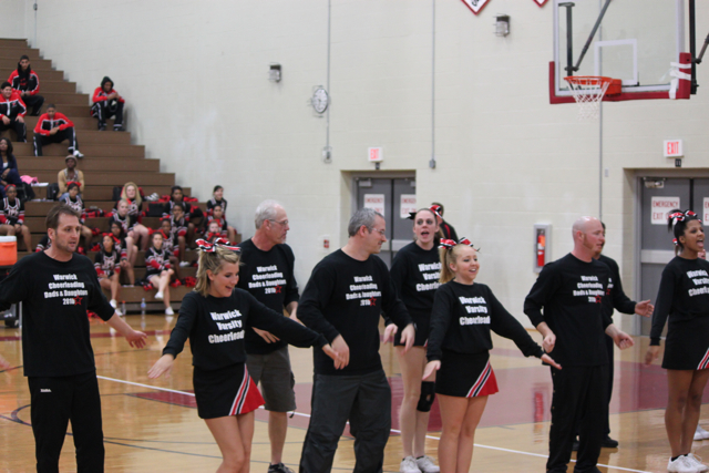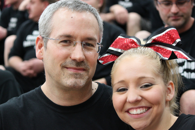 And I had to include these lovely pictures somewhere! For the last 3 years Curt has filled in on Dad/Daughter cheerleader night for the same girl whose father is not involved in her life. She is a senior this year and had Curt as a teacher her sophomore year. She’s a real sweetie, and it made for a fun, NORMAL, home basketball night!
