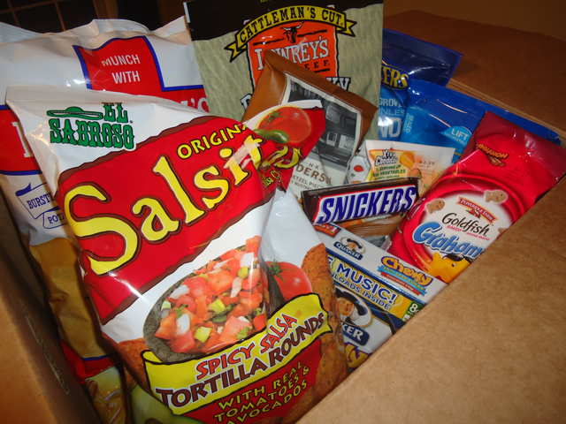 A friend drops off a LARGE box of snacks for an upcoming ski trip!!