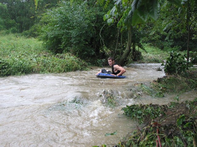 Our creek had flooded and they wanted to tube down it!!