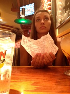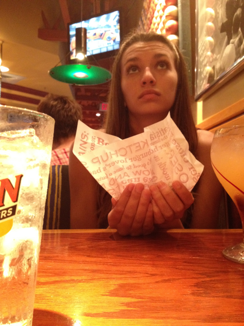 Poor Madi got sick on the Richmond trip. Here she is shivering (just as she was getting a fever) at the Red Robin. She is holding Tyler’s cheese sticks in her hand to try to warm up! That was also the night the AC broke in our hotel room and Ty and I got little sleep, and poor Madi was cold and then burning up.