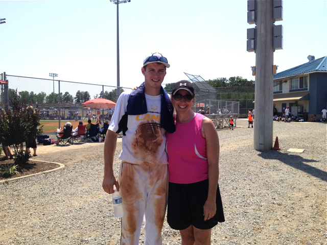 Tyler had a great set of games in Richmond, Va. It was well over 100 degrees, but we learned how to survive in the heat! I of course was wondering how am I ever going to get that uniform white again!?!?! (Note, after washing it 3 times with Oxi Clean it is still dirty!)