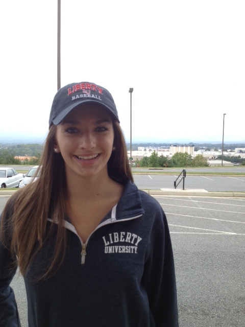 Not sure if this is a pic of a “normal” teen but this is Tyler doing a normal teen thing leading the student section during a football game.  And Madi sporting her new Liberty Univ. gear on a recent visit to Liberty.  Such normal things……….