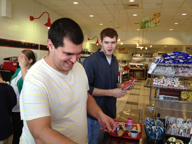 Seeing Tyler and Madi during the school day!  I am so thankful that I can teach at their school.  Here is Tyler going through the lunch line with one of my students.  I love being there for this kind of thing and I am thankful for that!
