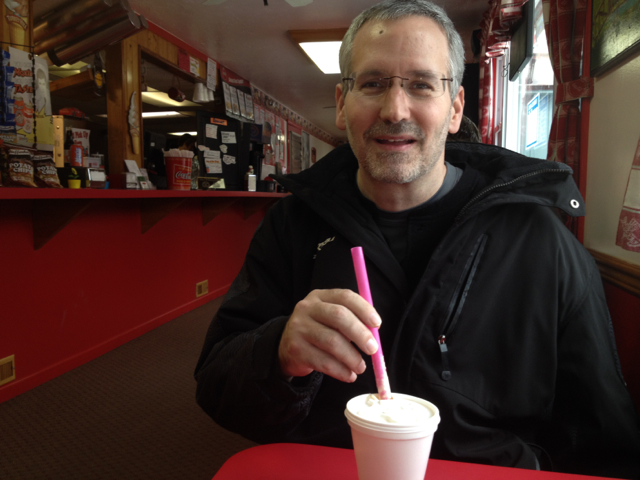 Enjoying a milkshake at one of his fave places